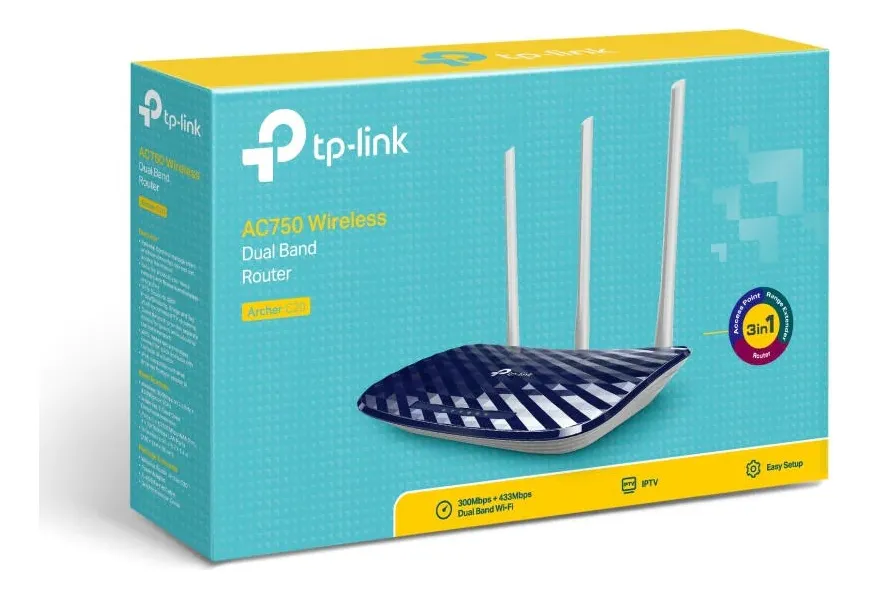 Archer C20. Router WiFi AC750 Tp-Link doble banda (433Mbps en 5Ghz y 300 Mbps en 2.4GHz) 1 puerto 10/100 WAN, 4 puertos 10/100 LA